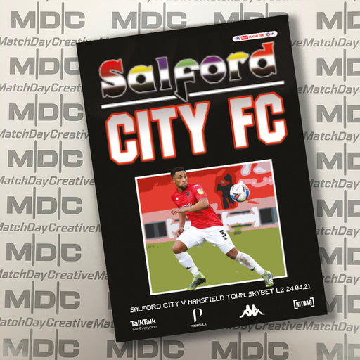 Official printed football programme 40 page Salford City v Mansfield Town in the SkyBet League 2 on 24.04.21.