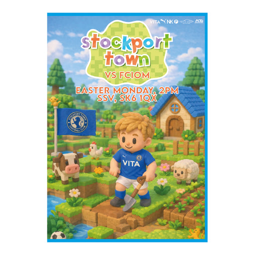 Print version of Stockport Town v FC Isle of Man in the North West Counties on 06.04.26 football programme season 2025/26. Full colour 20 pages.